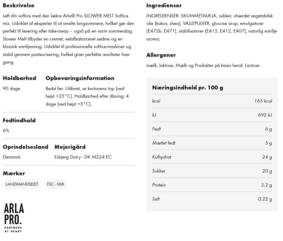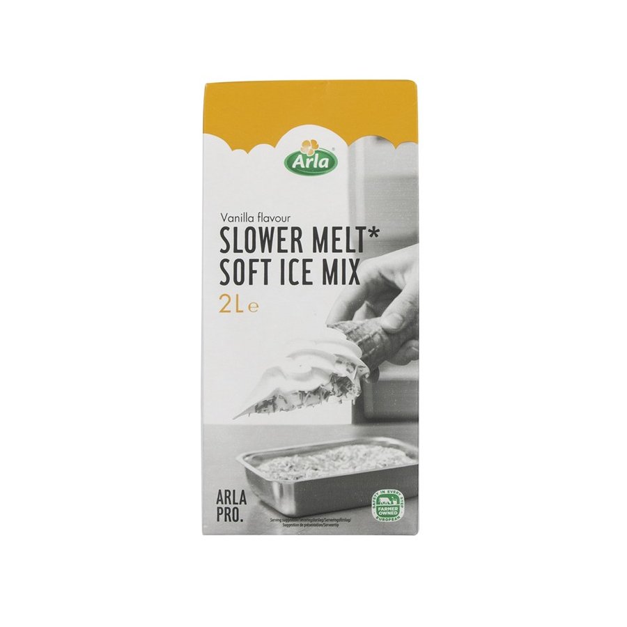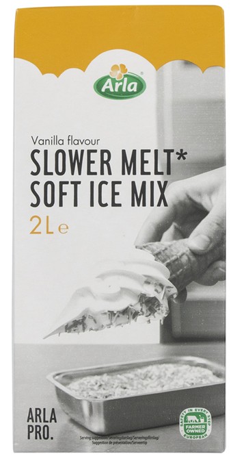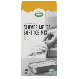 inkl. moms2 liter Vanillie Softicemix fra Arla Pro Slower Melt som smelter langsommere.